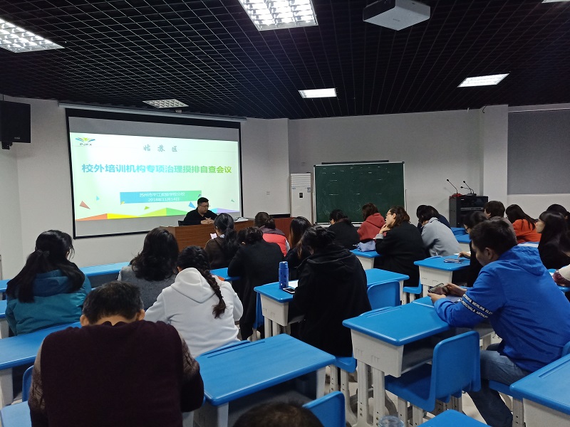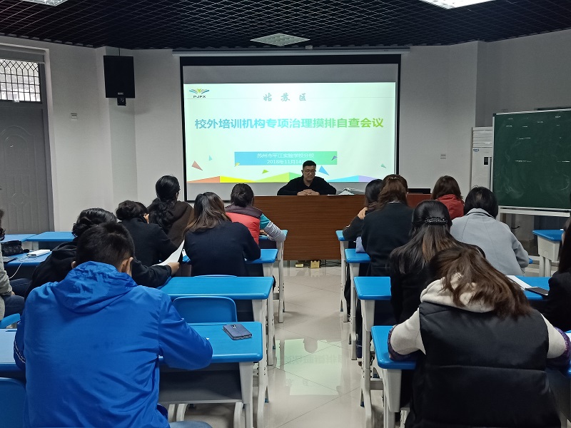 为进一步规范教学行为,贯彻落实市教育局等四部门联合印发的《关于开展校外培训机构专项治理行动的通知》,根据《江苏省校外培训机构专项治理方案》要求,2018年11月14日,平江实验学校分校召集全体教师召开关于校外培训机构专项治理摸排自查工作会议,部署此项工作。