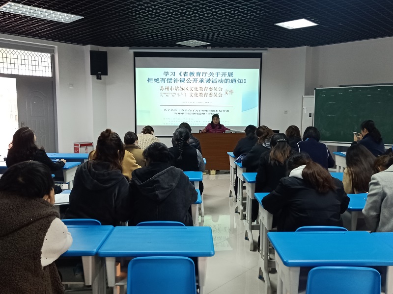 全体教师学习了《省教育厅关于开展 拒绝有偿补课公开承诺活动的通知》以及《省教育厅关于开展中小学违规办学行为专项治理工作的通知》精神,王玲妹副校长向老师们认真解读了《新时代中小学教师职业行为十项准则》中的有关内容,并带领全体教师从“规范教师职业行为,保障教师、学生的合法权益”等十二个方面对《中小学教师违反职业道德行为处理办法》进行了学习。通过学习,教师们充分认识到:“红线”不能触碰,在今后的教育教学工作中要进一步规范自身行为,认真履职履责。最后,全体教师签署了“江苏省中小学教师拒绝有偿补课公开承诺书”,郑重承诺拒绝有偿补课,认真落实立德树人根本任务,努力做新时代“四有”好教师。