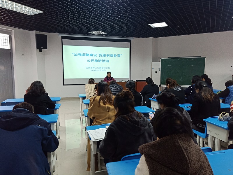 为切实贯彻全国教育大会精神,落实教育部《新时代中小学教师职业行为十项准则》《新时代幼儿园教师职业行为十项准则》和省纪委、省监委、省委教育工委、省教育厅《关于在全省开展教育领域人民群众反映强烈突出问题专项治理的实施方案》(苏纪发〔2018〕13号)要求,大力加强师德师风建设,2018年11月28日,平江实验学校分校举行 “加强师德建设 拒绝有偿补课”公开承诺活动。