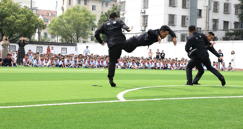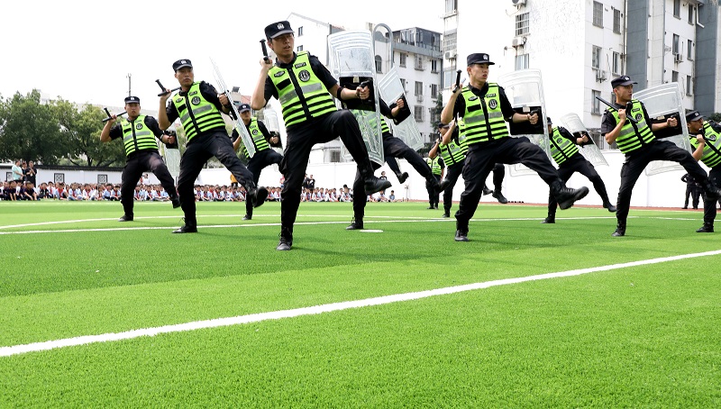 9月26日,姑苏巡特警大队、娄门派出所的警察叔叔来到平江实验学校分校,指导学校开展防恐防暴演练。特警队员组织方阵进行盾牌操、擒敌拳演练,并模拟如何抵御歹徒持刀行凶,指导师生提升逃生自救能力,用生动有效的形式提高师生安全意识,做好校园安保工作,迎接新中国成立70周年。