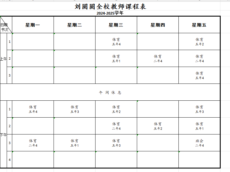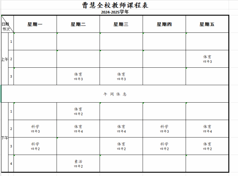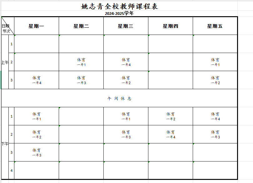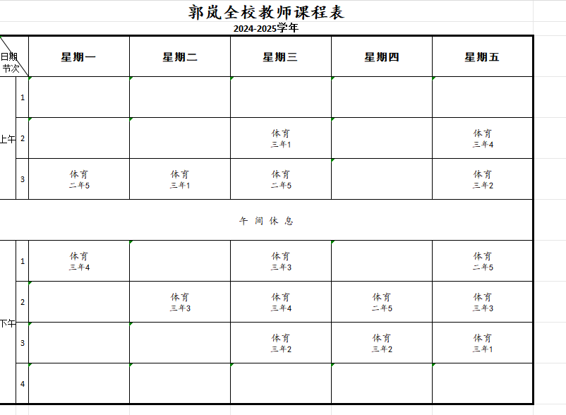 2024学年苏州市平江实验学校分校体育教师课表