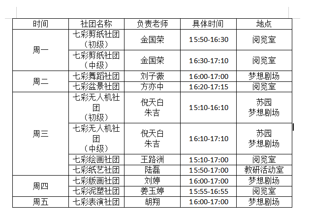 2024学年度苏州市平江实验学校分校兴趣小组活动安排表公示